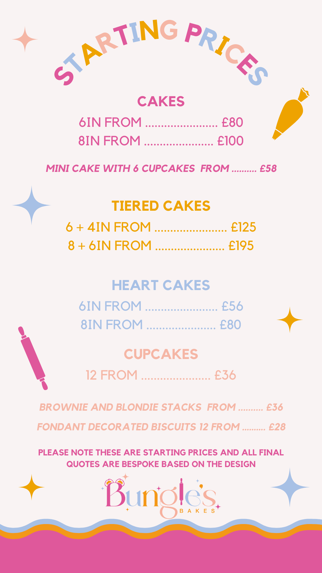 All orders are bespoke and the final price depends on the design. See below for starting prices and serving guides.